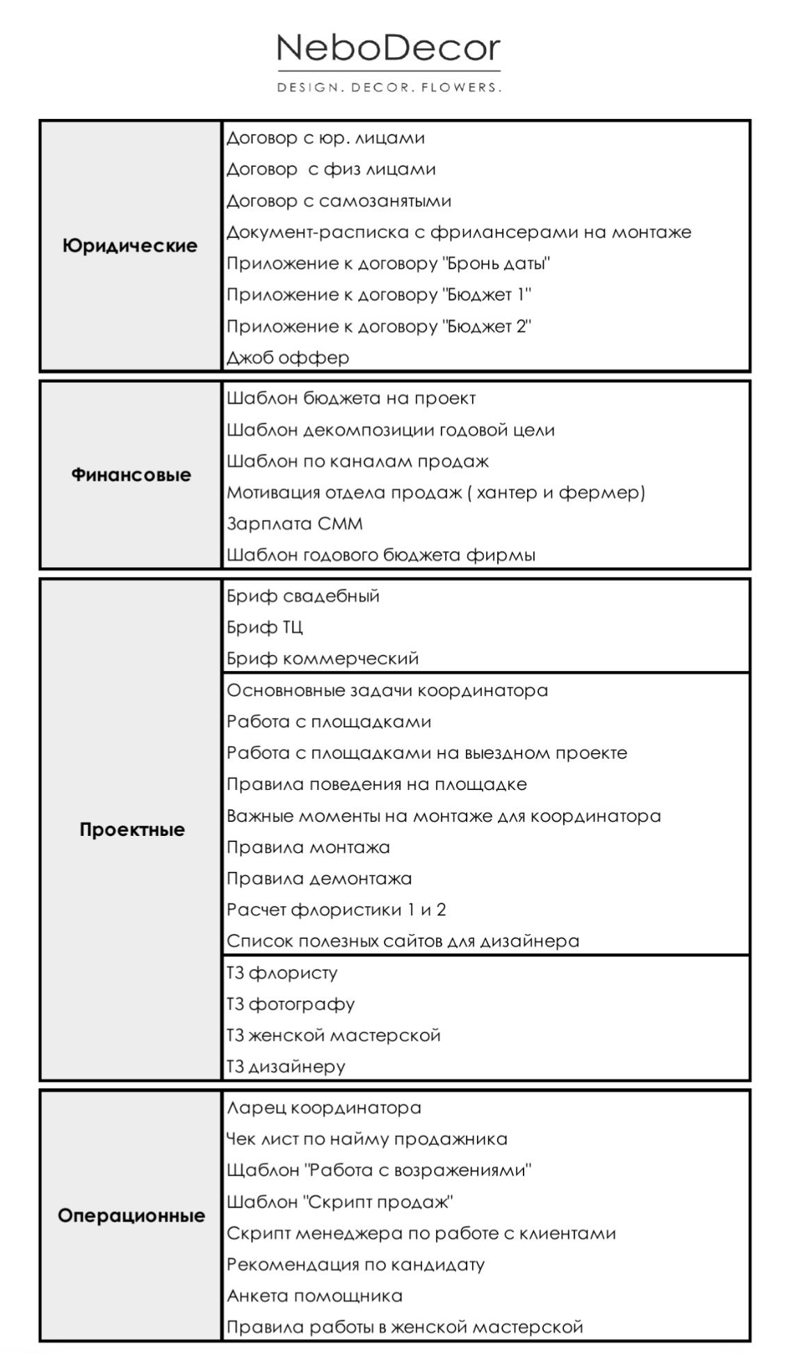 Полезные документы: чек-листы, сметы, тайминги, договора, брифы и прочие